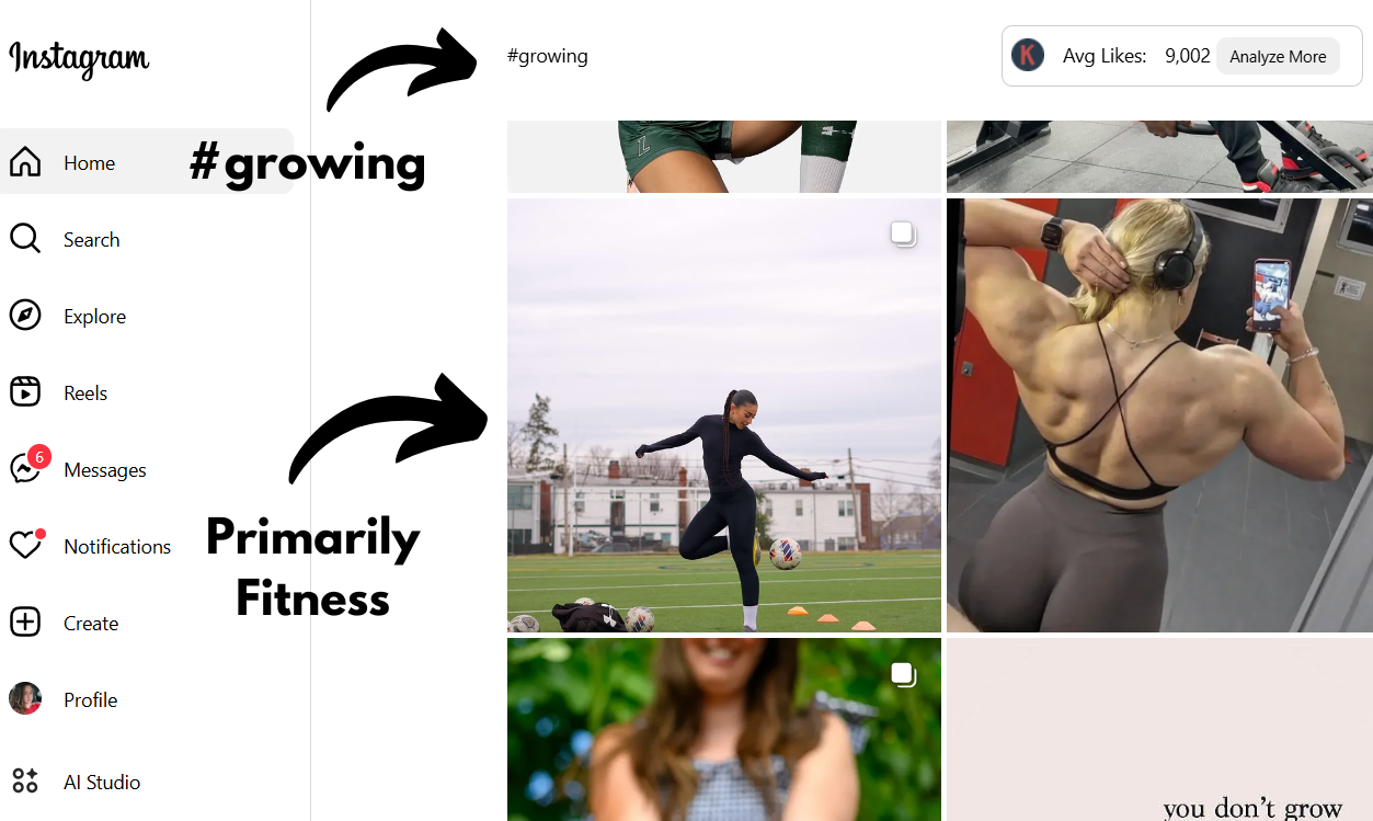 Check how hashtags are used – Hashtags can have different meanings depending on the community. For example, #growing can be used for plants but is dominated by the fitness community.
